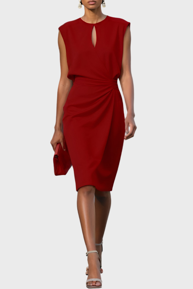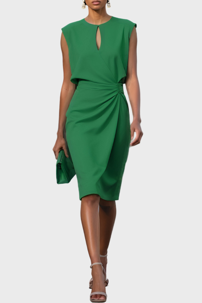 Tieto elegantné midi šaty v jemnej modrej farbe kombinujú rafinovanosť a minimalistickú estetiku, ideálne pre formálne a večerné príležitosti. Jej ženská línia je zvýraznená diskrétnymi detailmi a dokonalým strihom.