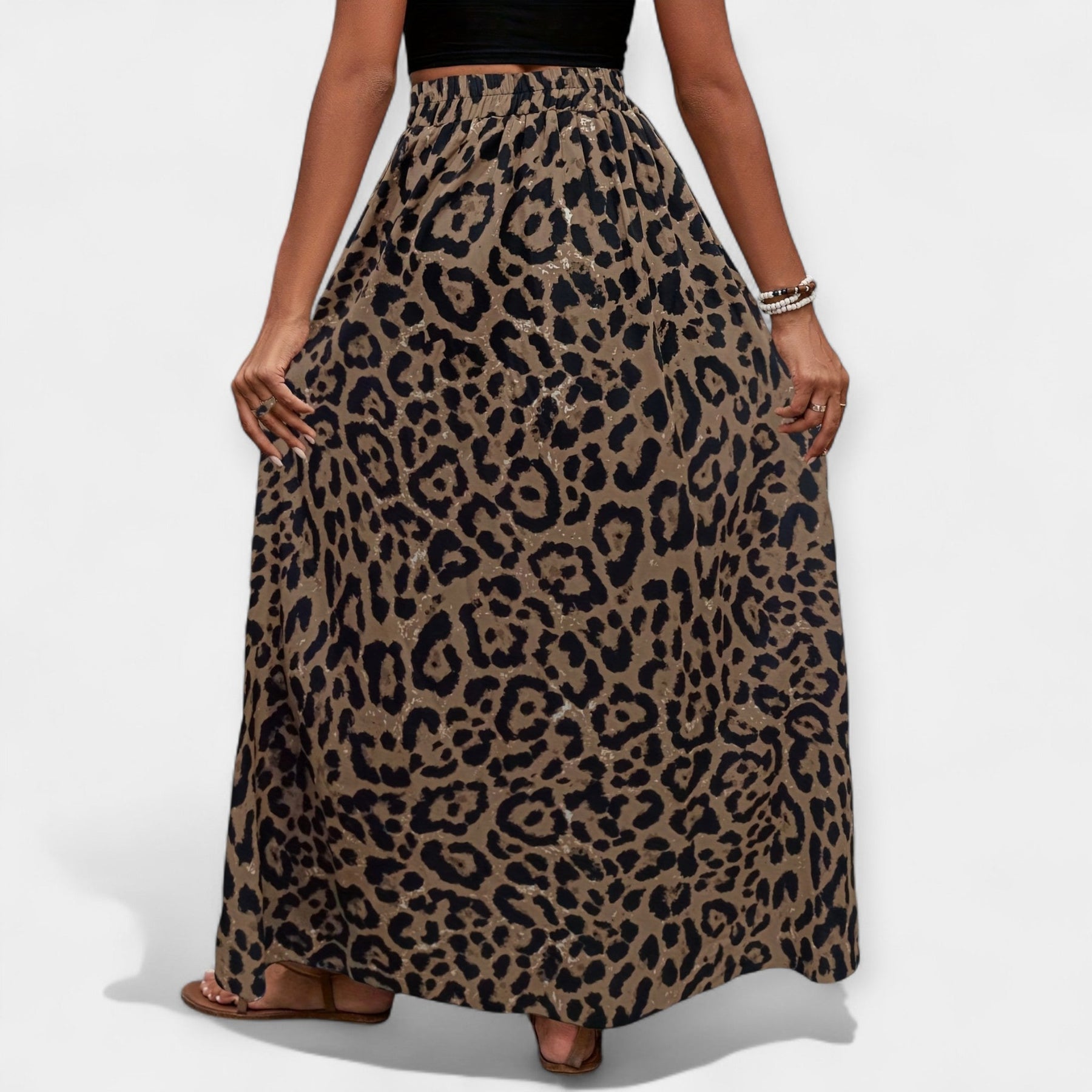 Tento leopardí midi sukňa dynamicky objíma ženskosť a je absolútnym módnym vyhlásením na leto. Rozparok na spodnej časti pridáva pohyb a zvodnosť, zatiaľ čo pohodlný strih ju robí ideálnou na každú chvíľu dňa.
