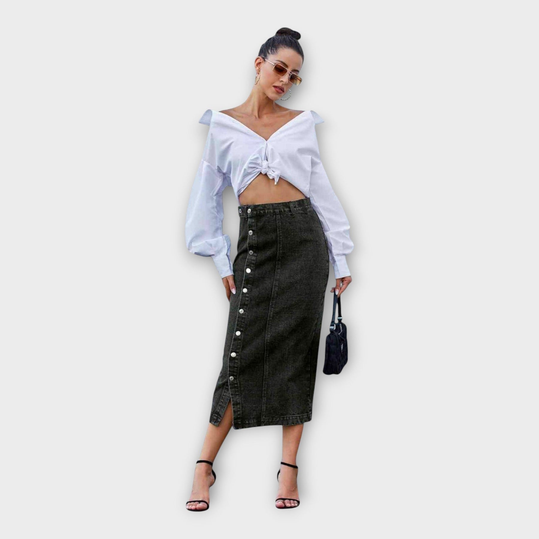 Sukňa, ktorá kombinuje eleganciu a praktickosť, ponúkajúca dokonalý finálny dotyk k každému vzhľadu. Jej flexibilný dizajn ju robí ideálnou pre všetky príležitosti, od neformálnych až po elegantnejšie. S minimalistickou estetikou a pohodlným strihom je základným kúskom pre každú garderóbu.