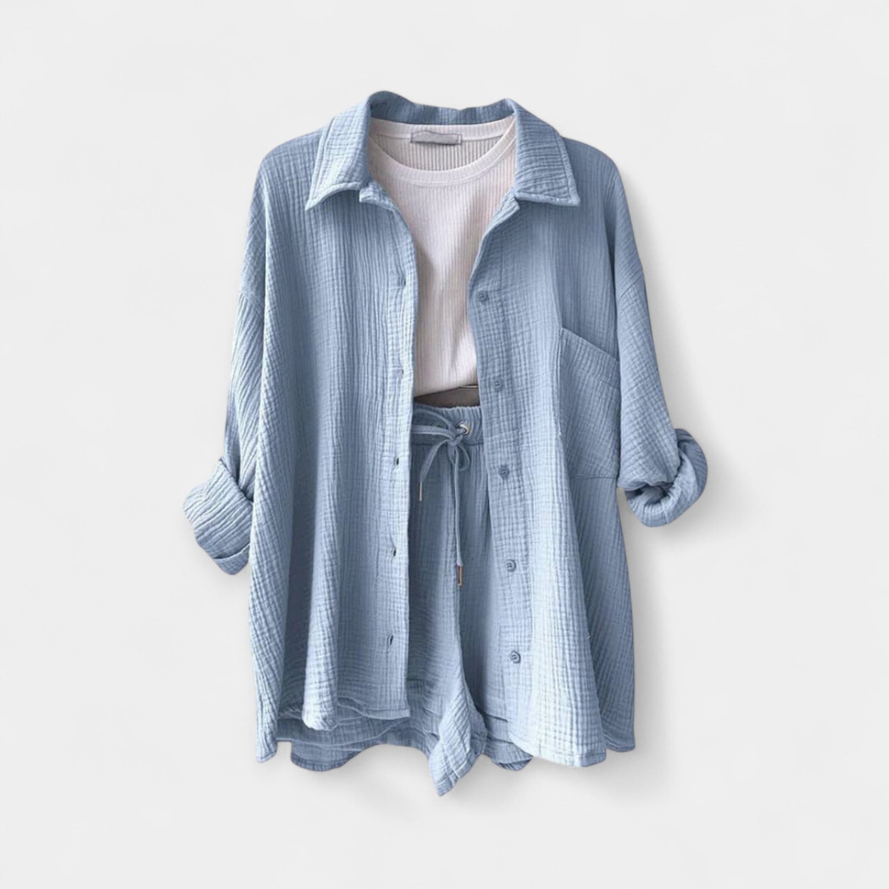 Ľahká a elegantná sada na najteplejšie dni v roku. Ideálna na chvíle pri bazéne, prechádzky alebo letné úniky so štýlom a pohodlím.